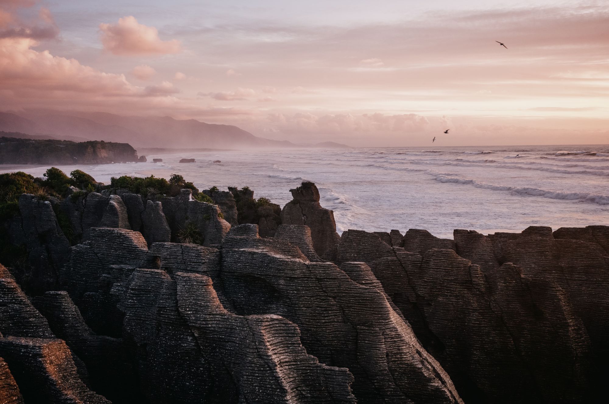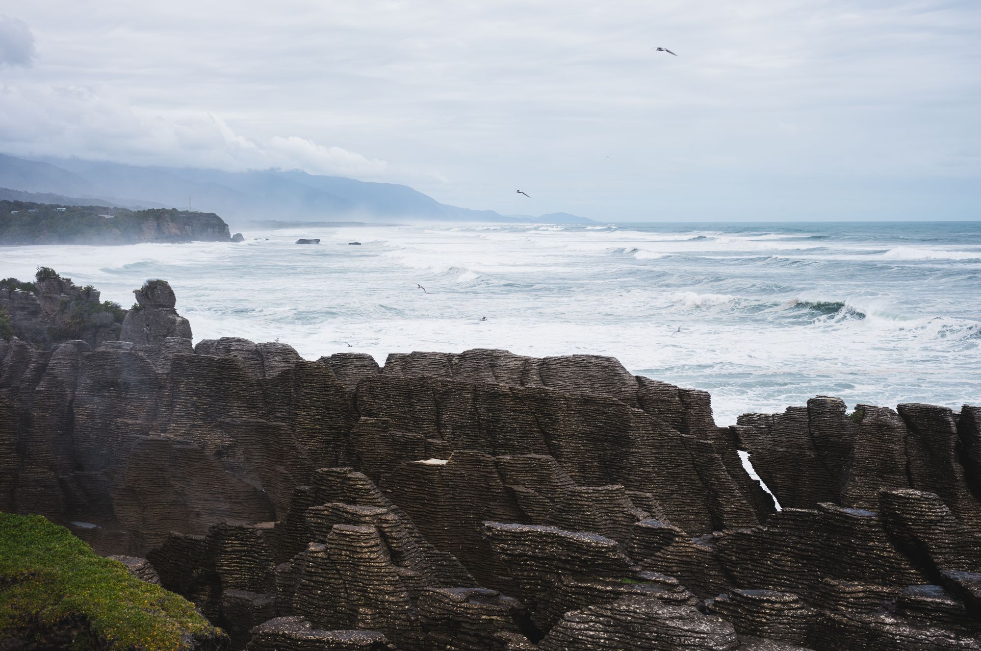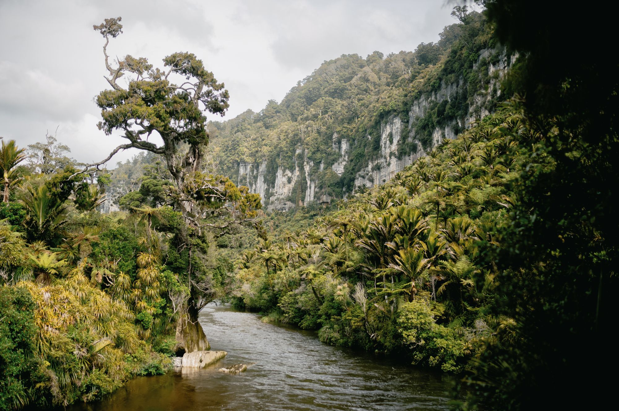 Here, storms clash against the western slopes of the Southern Alps, unleashing torrents of rain and making it one of the wettest regions globally. We fully experienced the deluge, especially during a torrential downpour on our third day featuring some “dodgy weir crossings.” But sunshine was frequent enough to allow for some brief hikes inland, offering a bit of a glimpse into the wildness that still pervades in this part of New Zealand.
